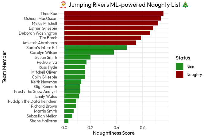 A festive, tongue-in-cheek machine learning experiment that puts the Jumping Rivers team on Santa’s Naughty List.